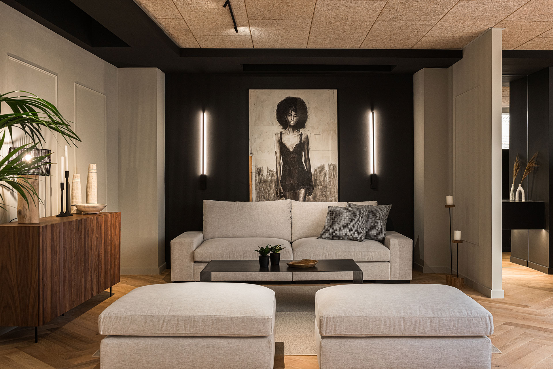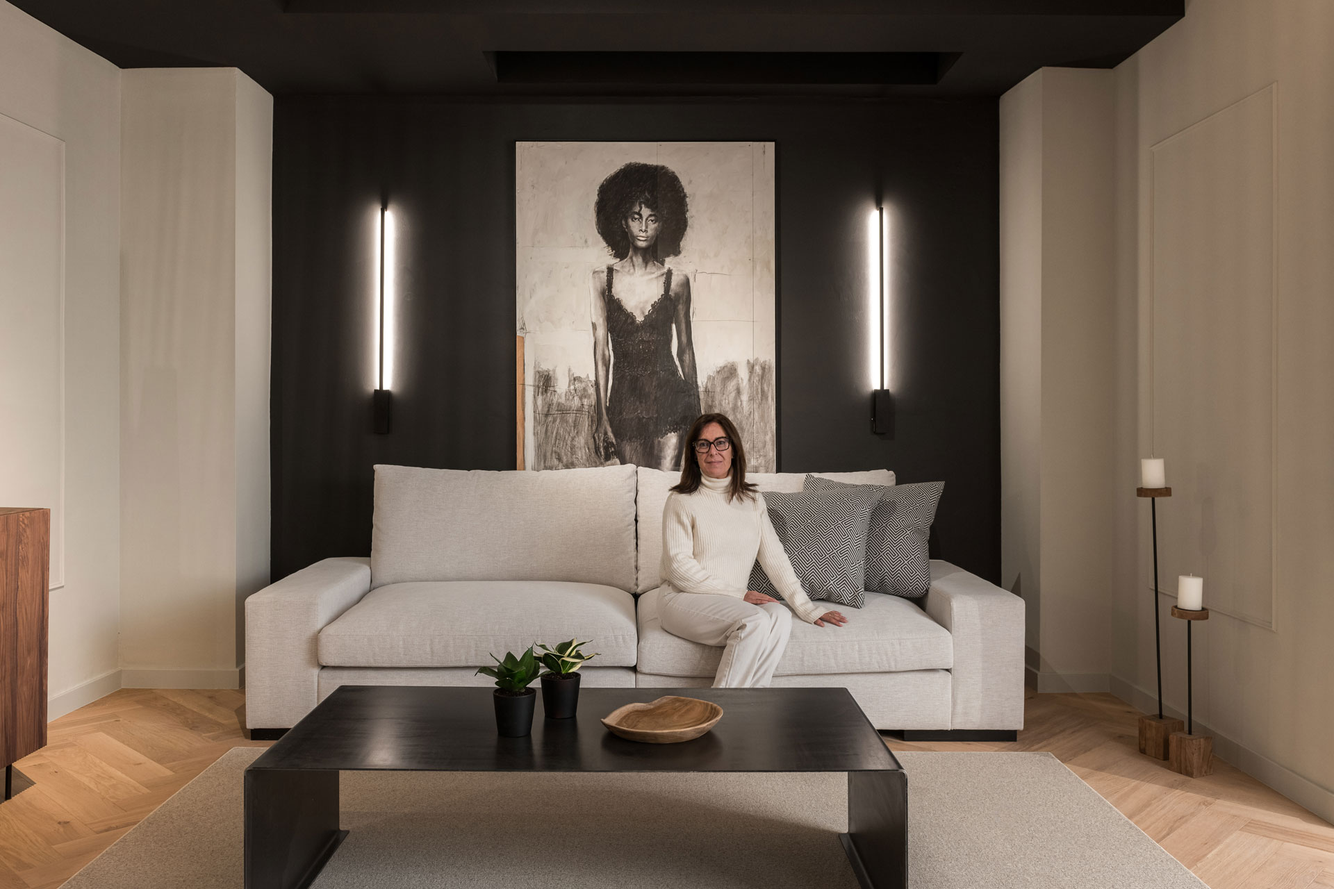 Com estem en un showroom, en aquest cas, el PER A QUI, no era clar, per la qual cosa vaig decidir crear aquest espai inspirant-me en la dona que veus en el quadre sobre el sofà.