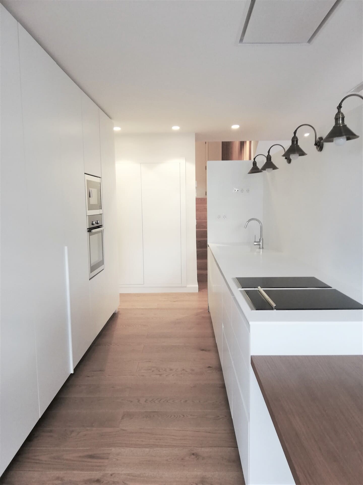 Aquest projecte d’interiorisme i reforma integral transforma un pis de tres nivells al carrer Ganduxer, en ple cor de Barcelona. L’habitatge s’organitza amb una gran entrada-rebedor que incorpora armaris de magatzematge i connecta els diferents espais. Des d’aquí, s’accedeix a la zona de dia, situada en un nivell inferior, on es distribueixen el saló, el menjador i una cuina semioberta que no arriba fins al sostre, aportant lleugeresa visual i continuïtat espacial.