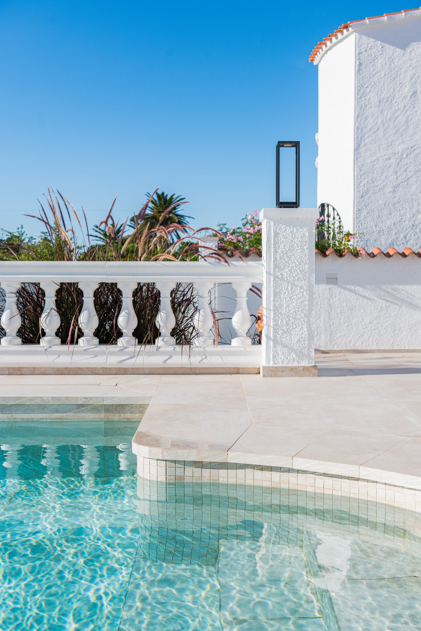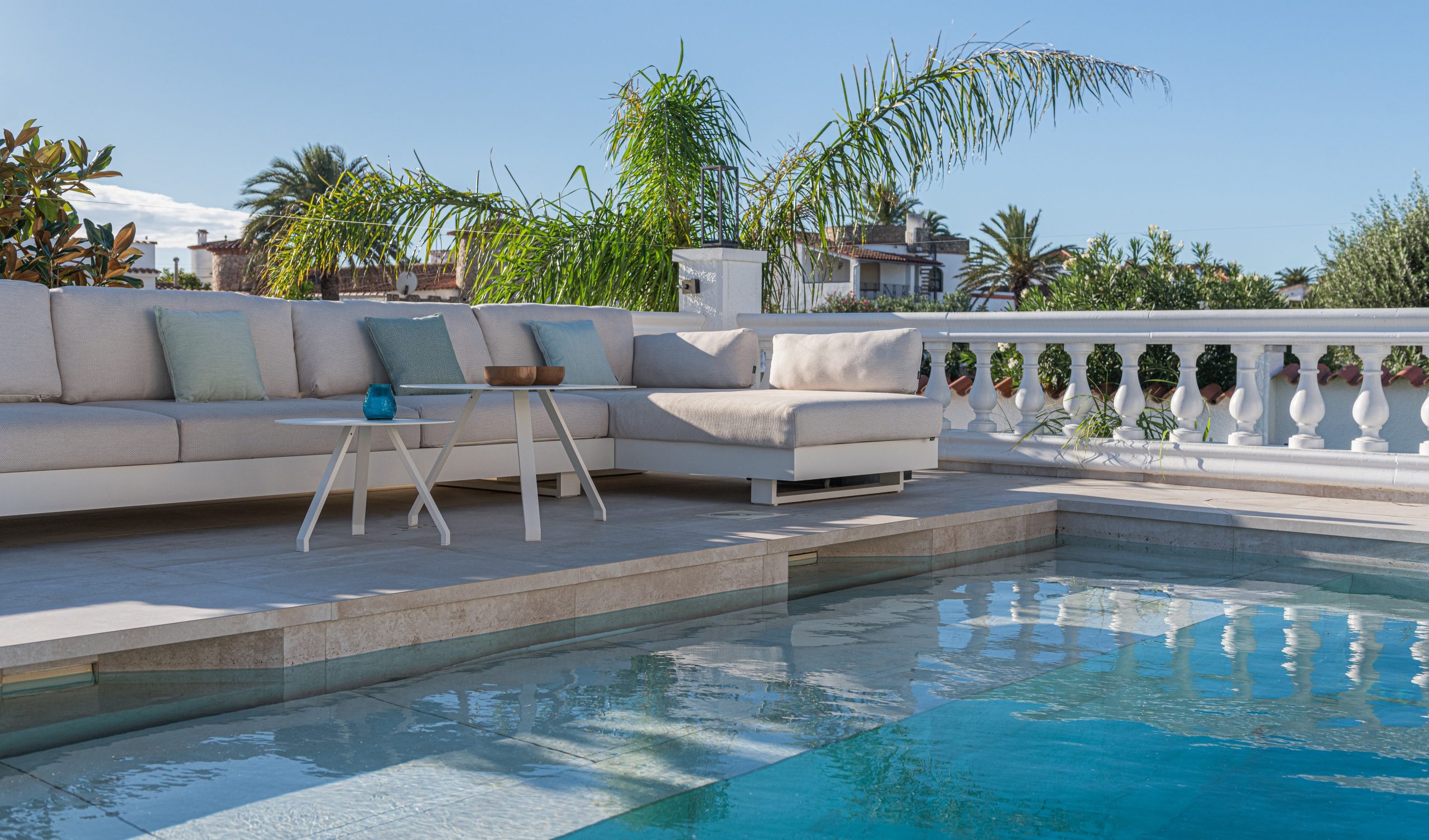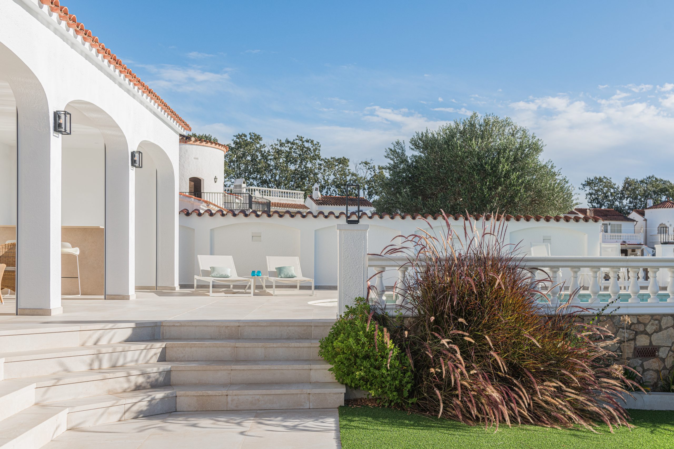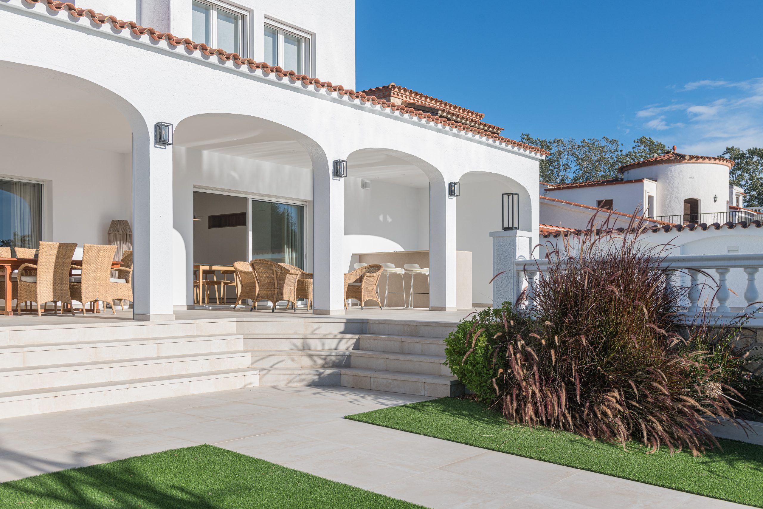 Les necessitats per a l’exterior han estat: restauració i climatització de la piscina, renovació del paviment, gespa i paisatgisme, cuina i menjador exterior, il·luminació general i puntual, renovació de l’embarcador per a un iot i grua per a motos d’aigua.