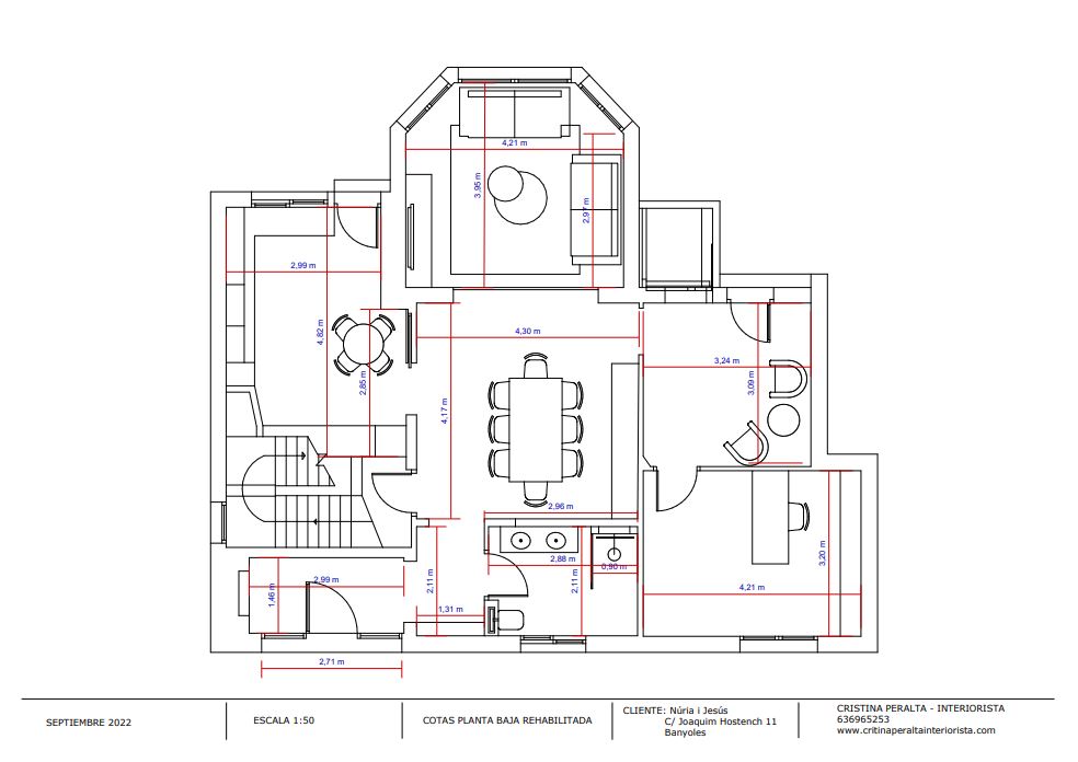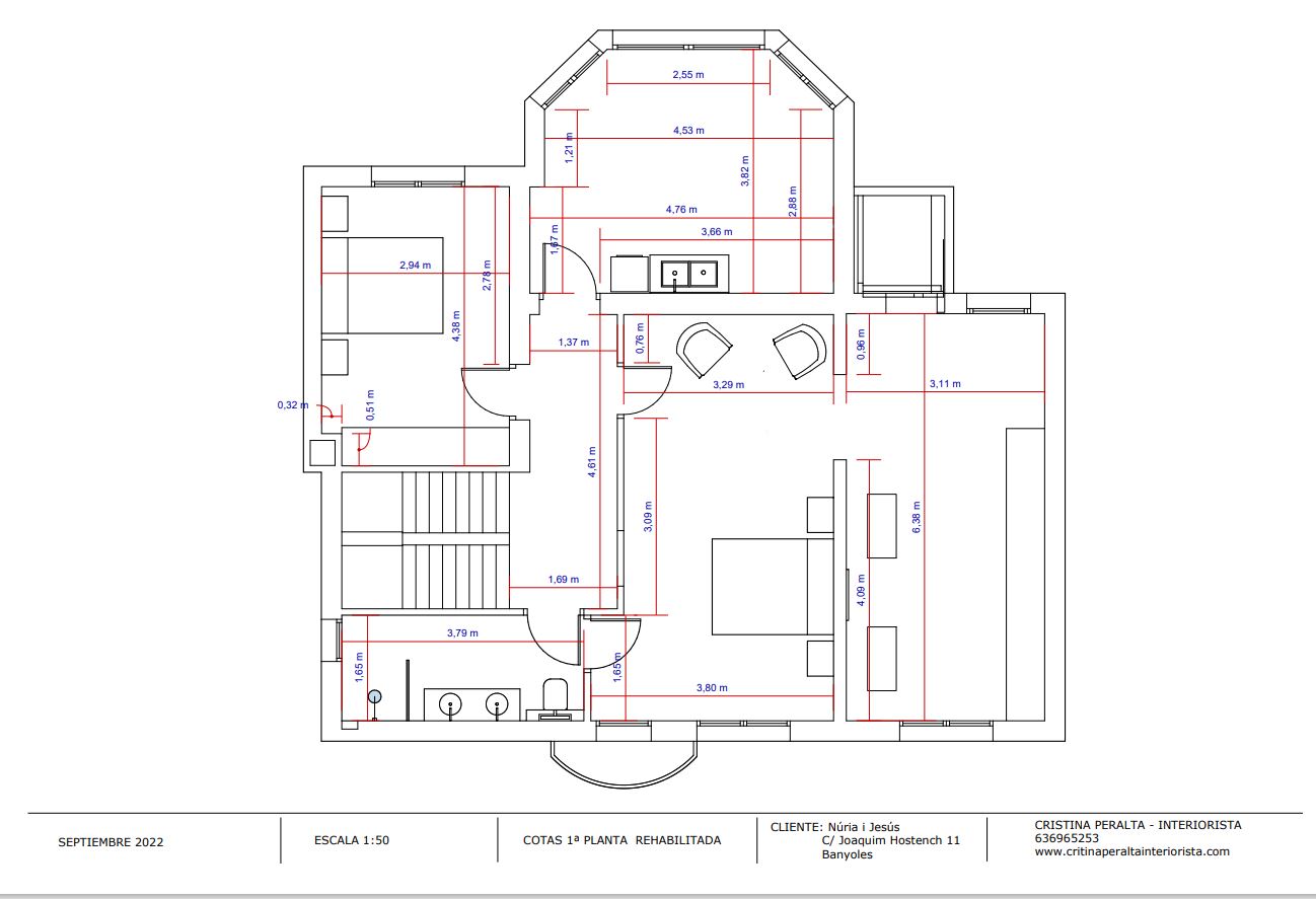 PLANTA BAIXA: Actualitzem els espais per portar-los dels 80′ a l’actualitat i ens centrem sobretot en la funcionalitat de la cuina. A partir de certa edat ja no volem ajupir-nos a rebuscar res en armaris incòmodes ni fer malabars per manca de superfície de treball.