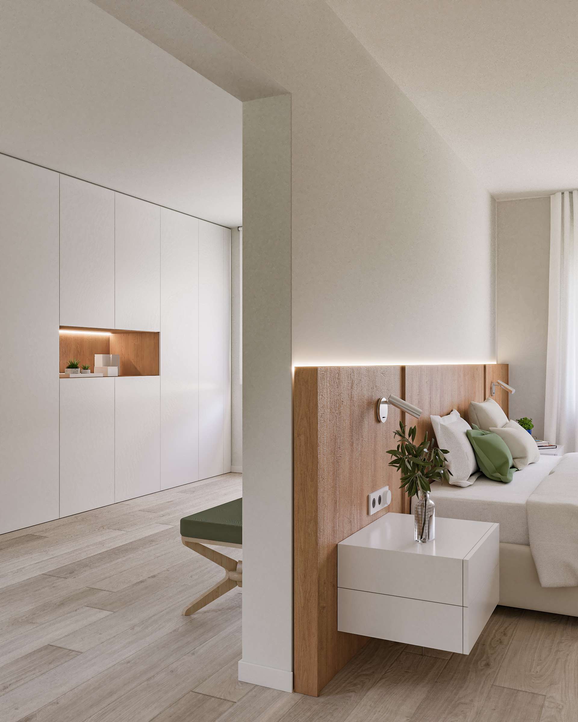 1a PLANTA: Abans, la zona dels dormitoris per a tota la família. Ara un gran dormitori amb un no menys important vestidor. Un gran safareig/cambra de planxa i roba blanca. I un dormitori de convidats.