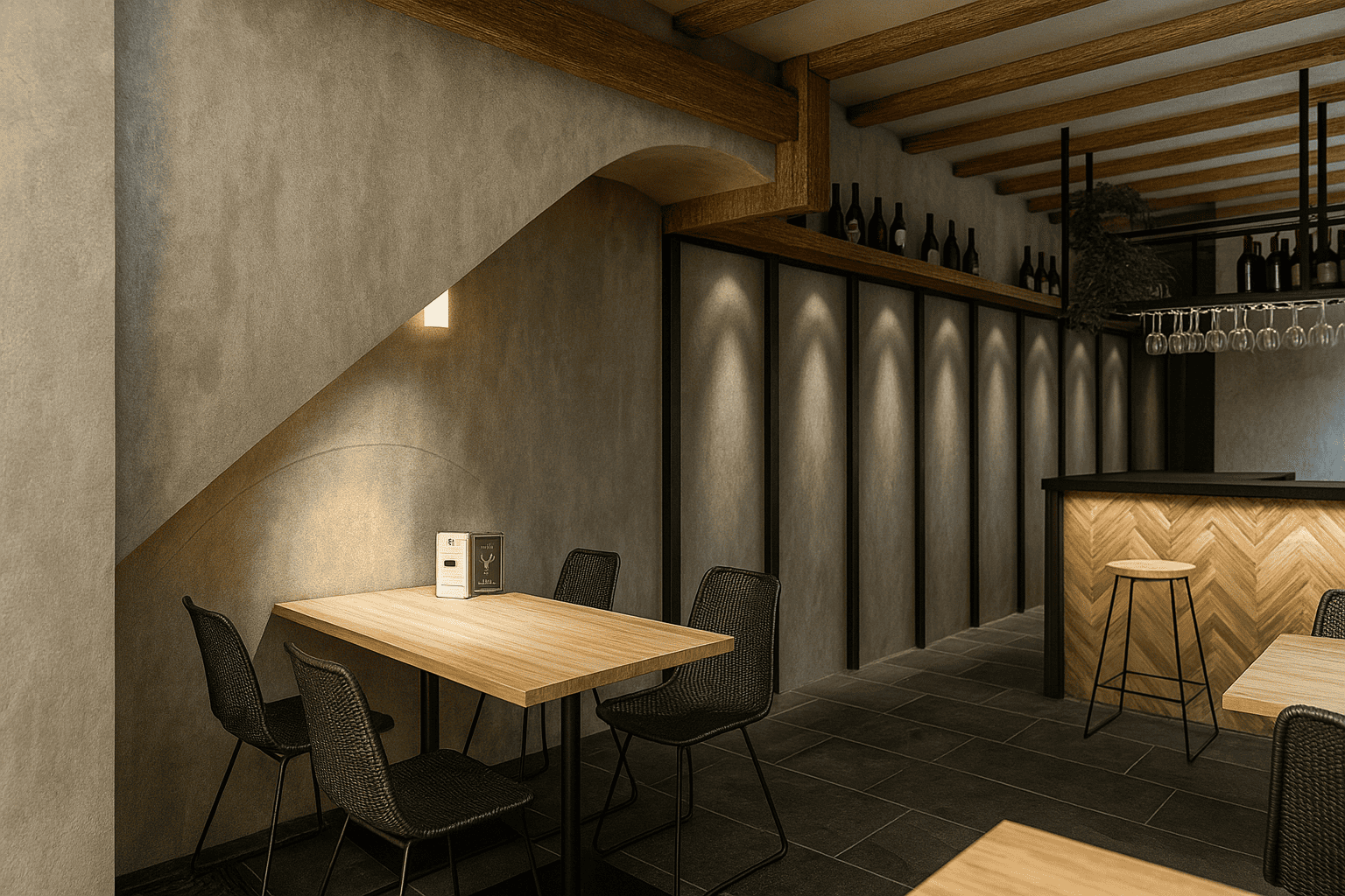 Este proyecto parte de la rehabilitación de un local. Antiguamente funcionaba como carnicería para darle un nuevo uso como bar bocatería. El espacio conserva la esencia original a través de elementos estructurales recuperados y materiales naturales que aportan autenticidad y calidez.